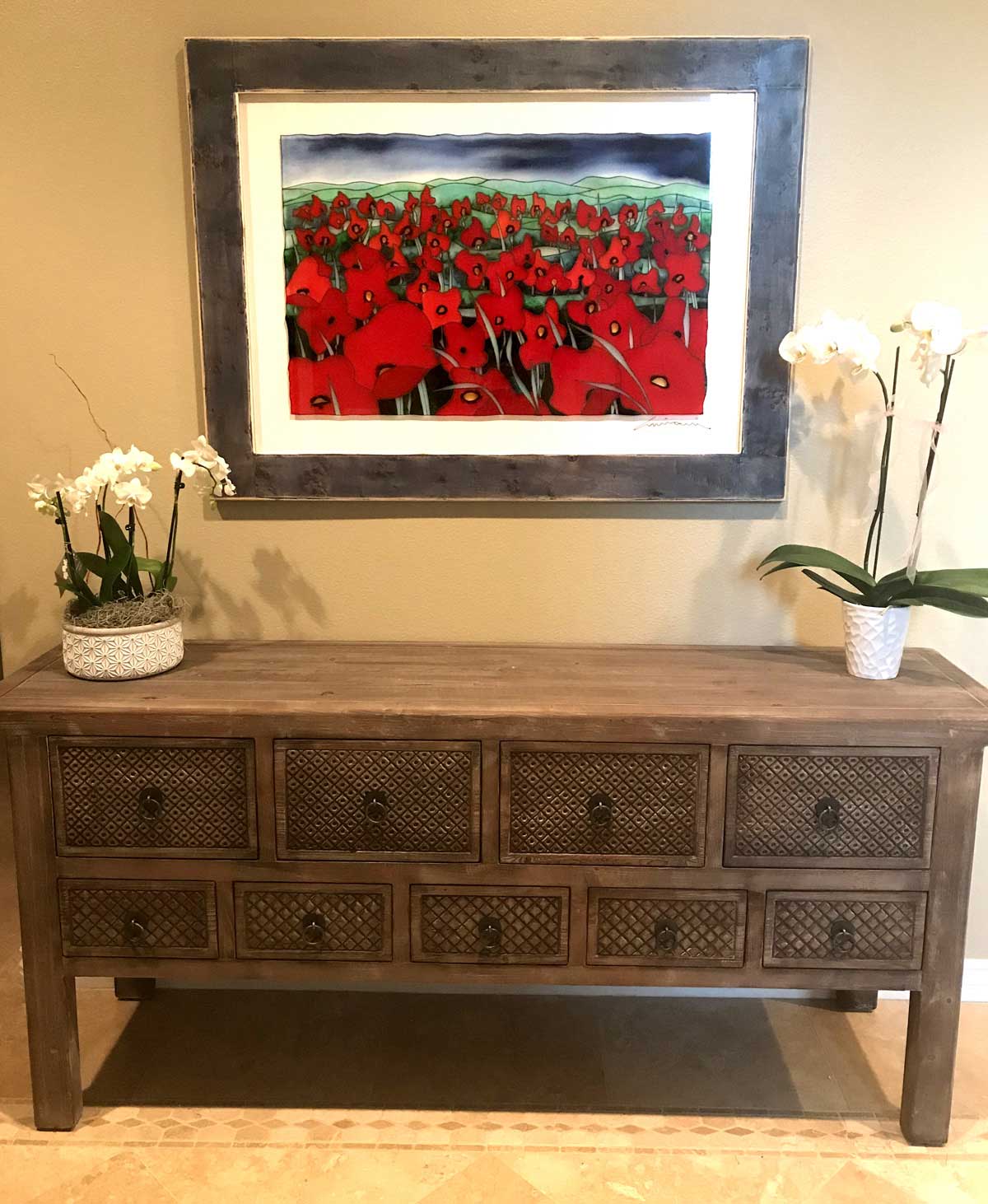 Cruciani's paintings complement all kinds of furniture and interiors in various parts of the world.