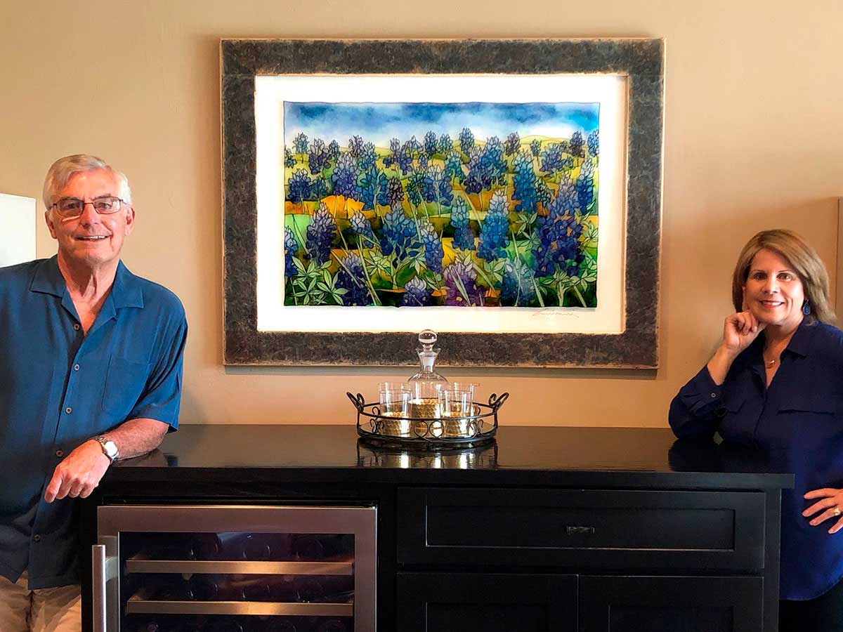 As a consummate artist, he has always loved colour, developing his own palette while immersing himself in the local history; gathering knowledge over time through careful observation and a profound love for nature, in all its myriad forms and seasonal changes. Each of his paintings is designed from memory. Italy's green heart comes to life on his glass canvas, and travels across five continents like an everlasting memory of an unforgettable journey.